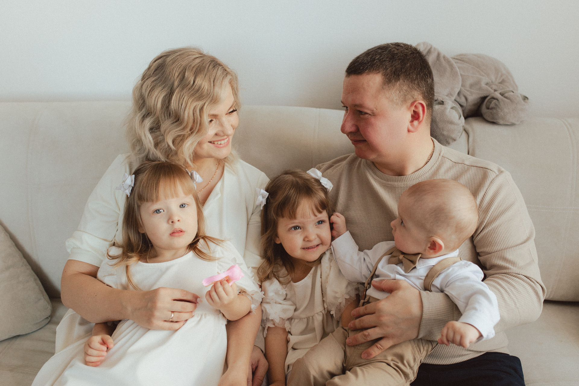 Ульяна, спасибо, что сохранила для нас эти моменты, дети на фото такие милые и сладкие, они так быстро растут… Это был один из самых важных и счастливых дней! Мы очень рады, что день рождения наших детей начался с утренней фотосессии, 2 часа пролетели незаметно, легко, весело, тепло и душевно, как и весь этот день, ты нас зарядила) Муж знал, какого фотографа выбрать! Тебя нисколько не смутила сложность работать с нашей большой семьей, особенно с двумя непоседливыми девчонками, да еще и дома! Еще раз спасибо и до новых встреч!